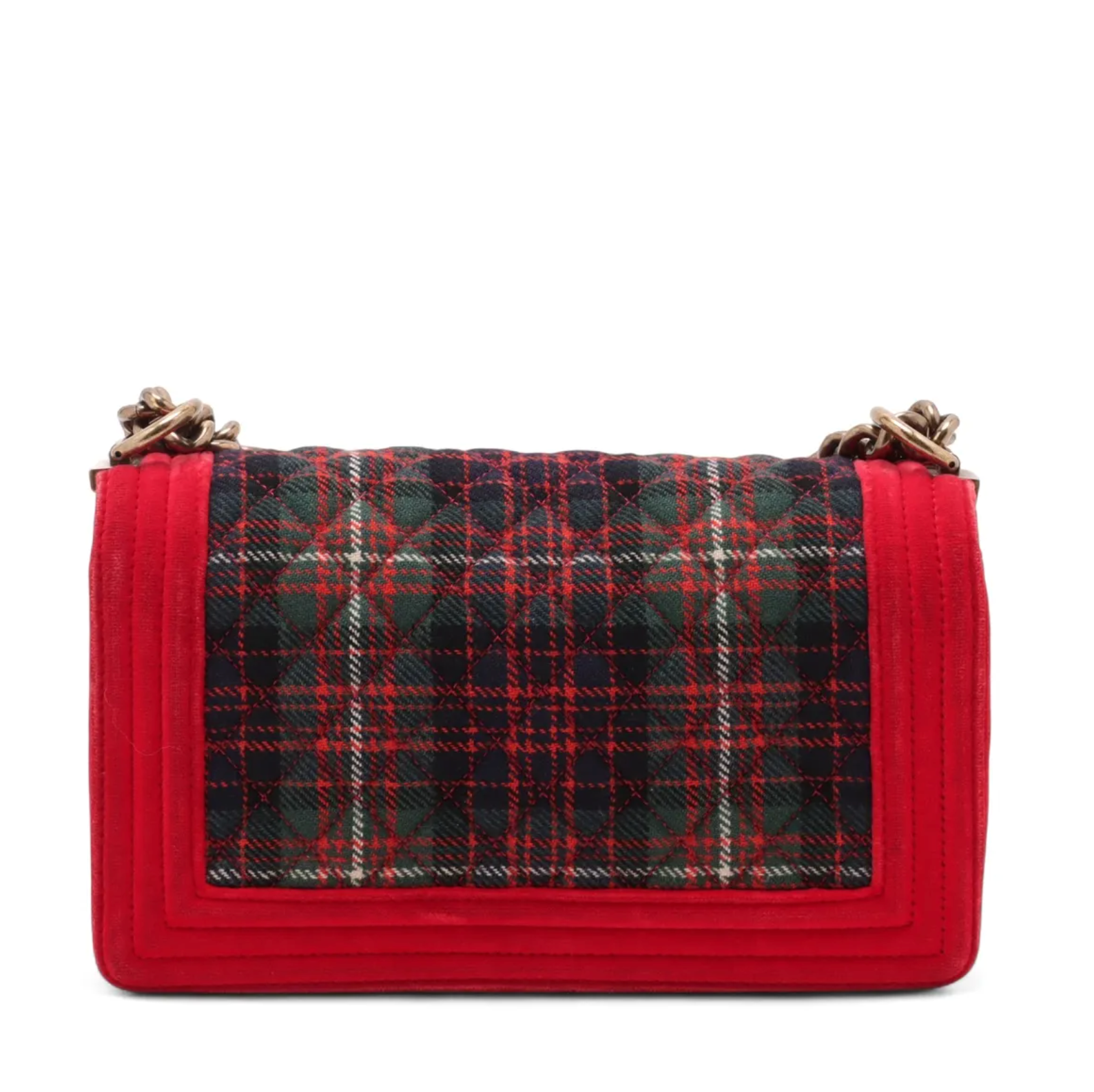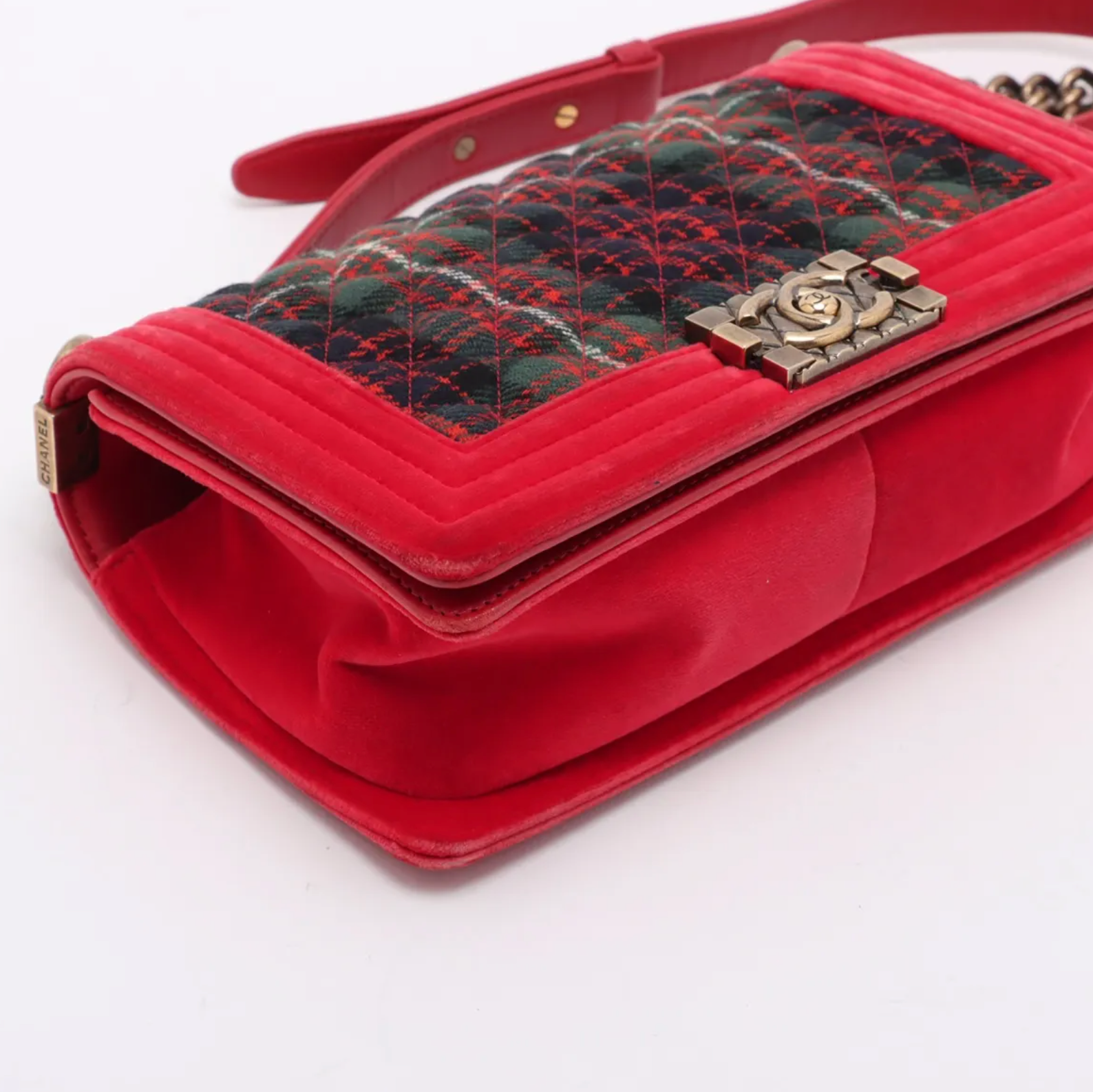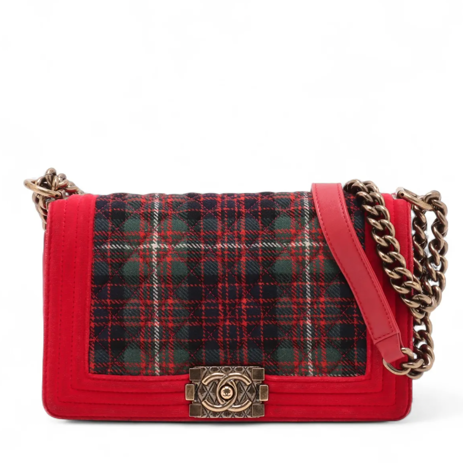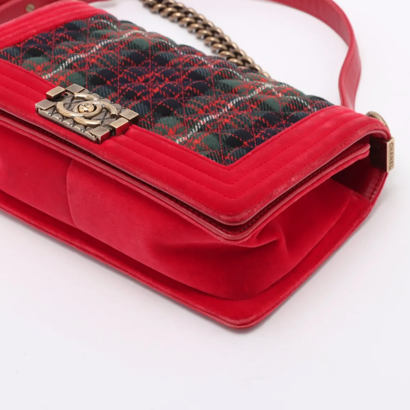 Chanel 2013 Paris-Edinburgh Medium Tartan Red Velvet Plaid Tweed Boy Bag S1014-3206