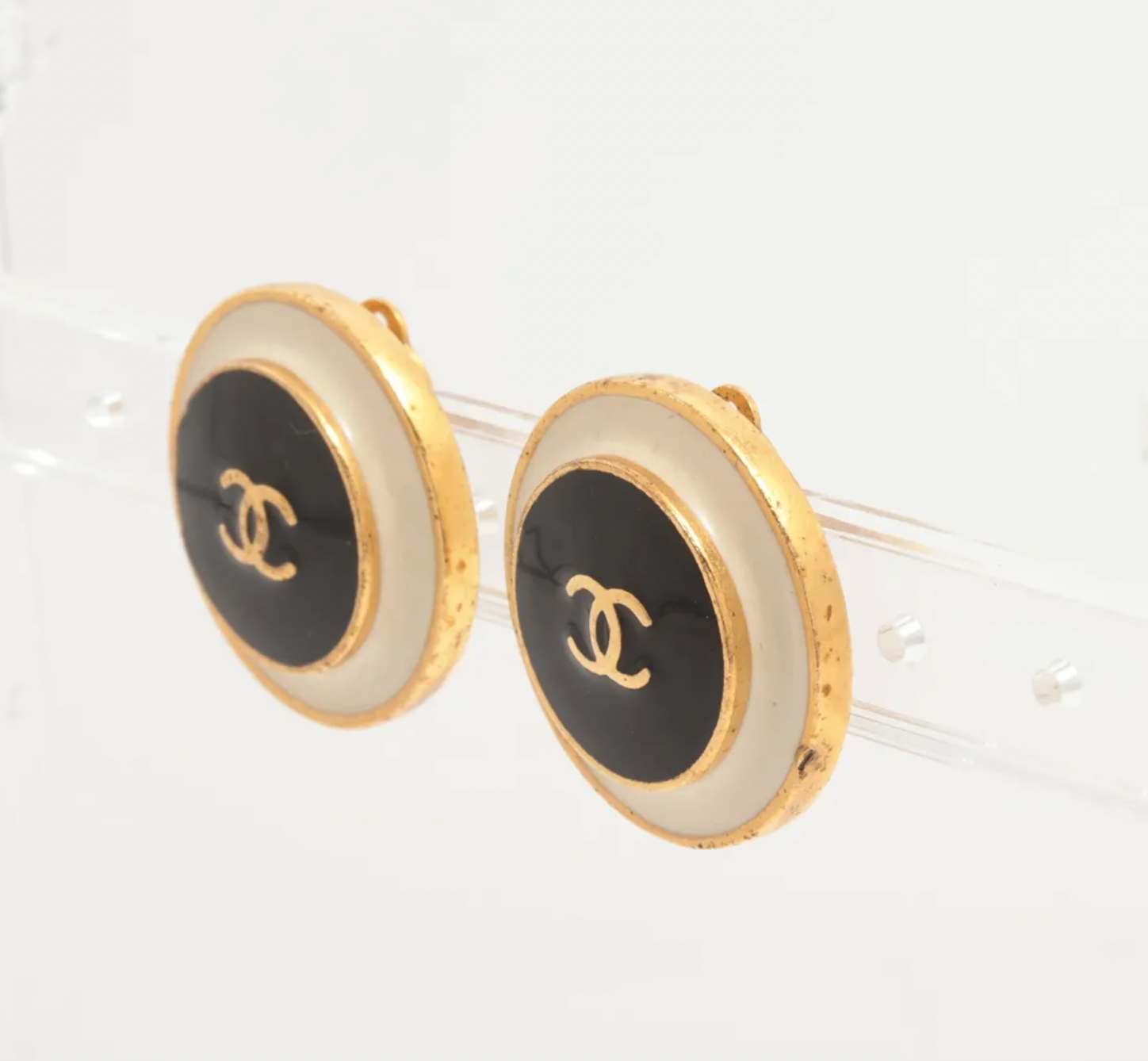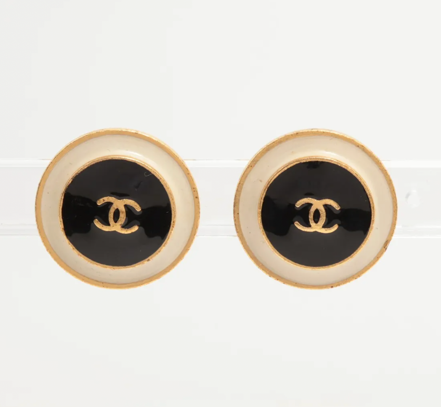 Chanel Vintage 96A Black & White Clip-On Earrings S122-0240