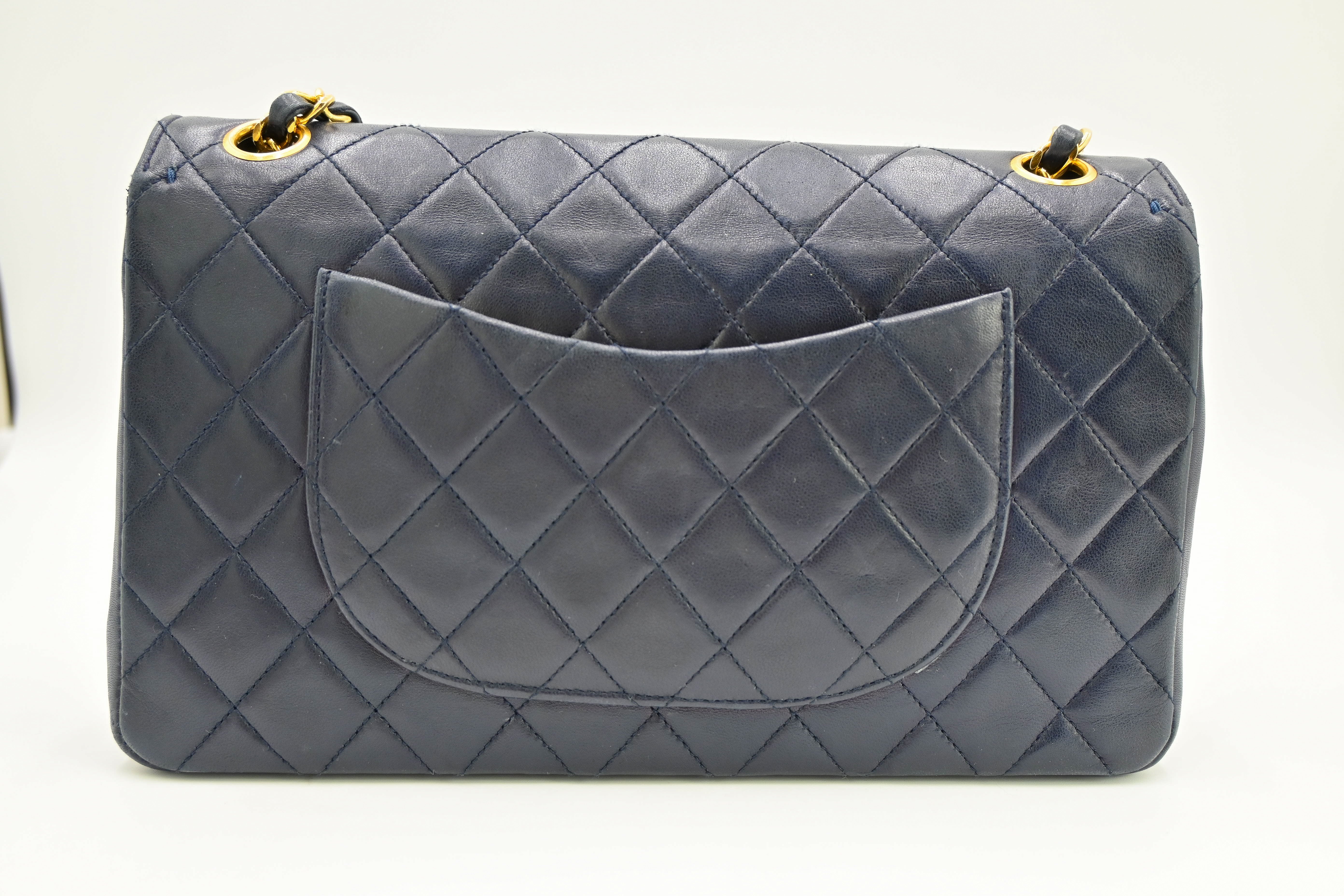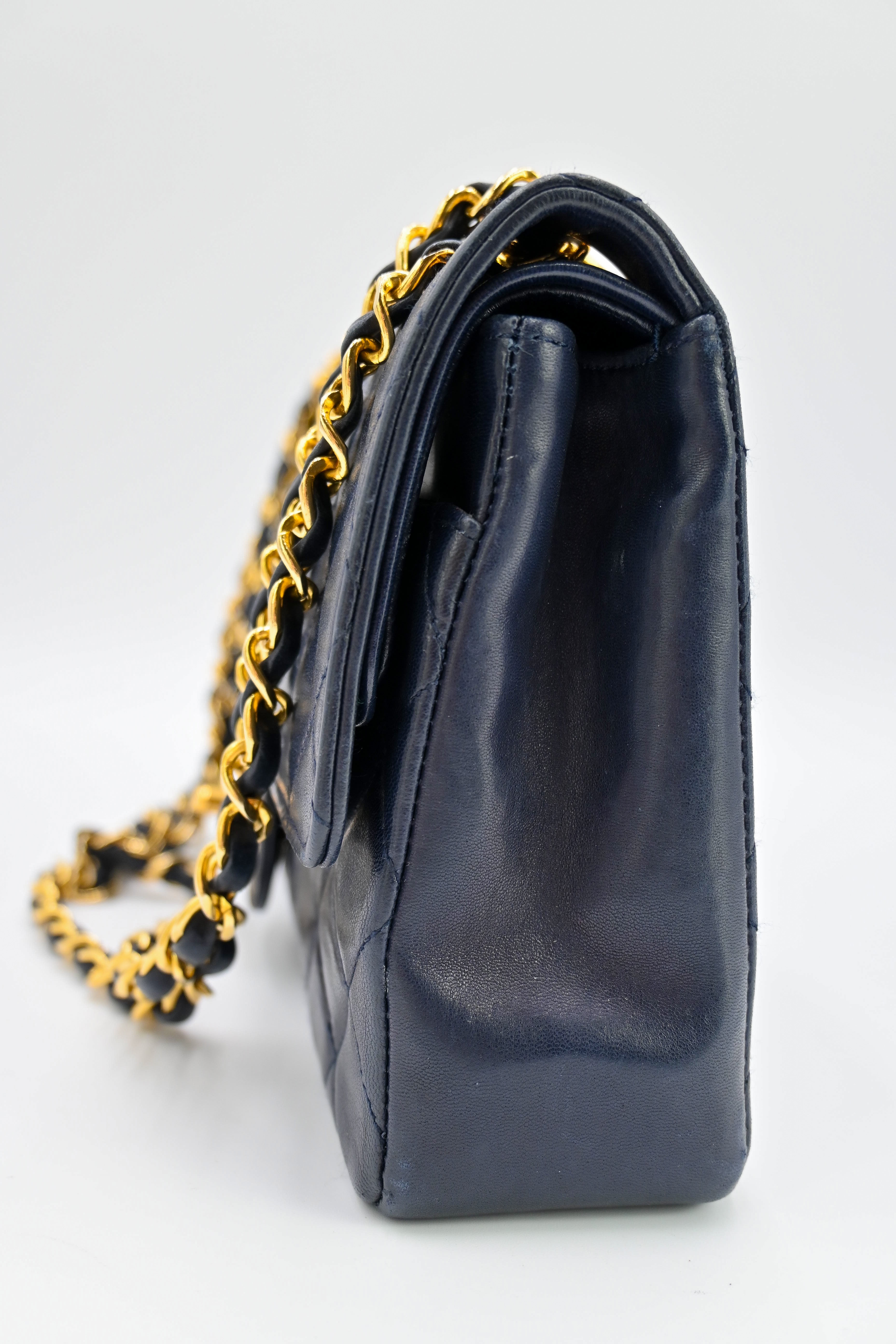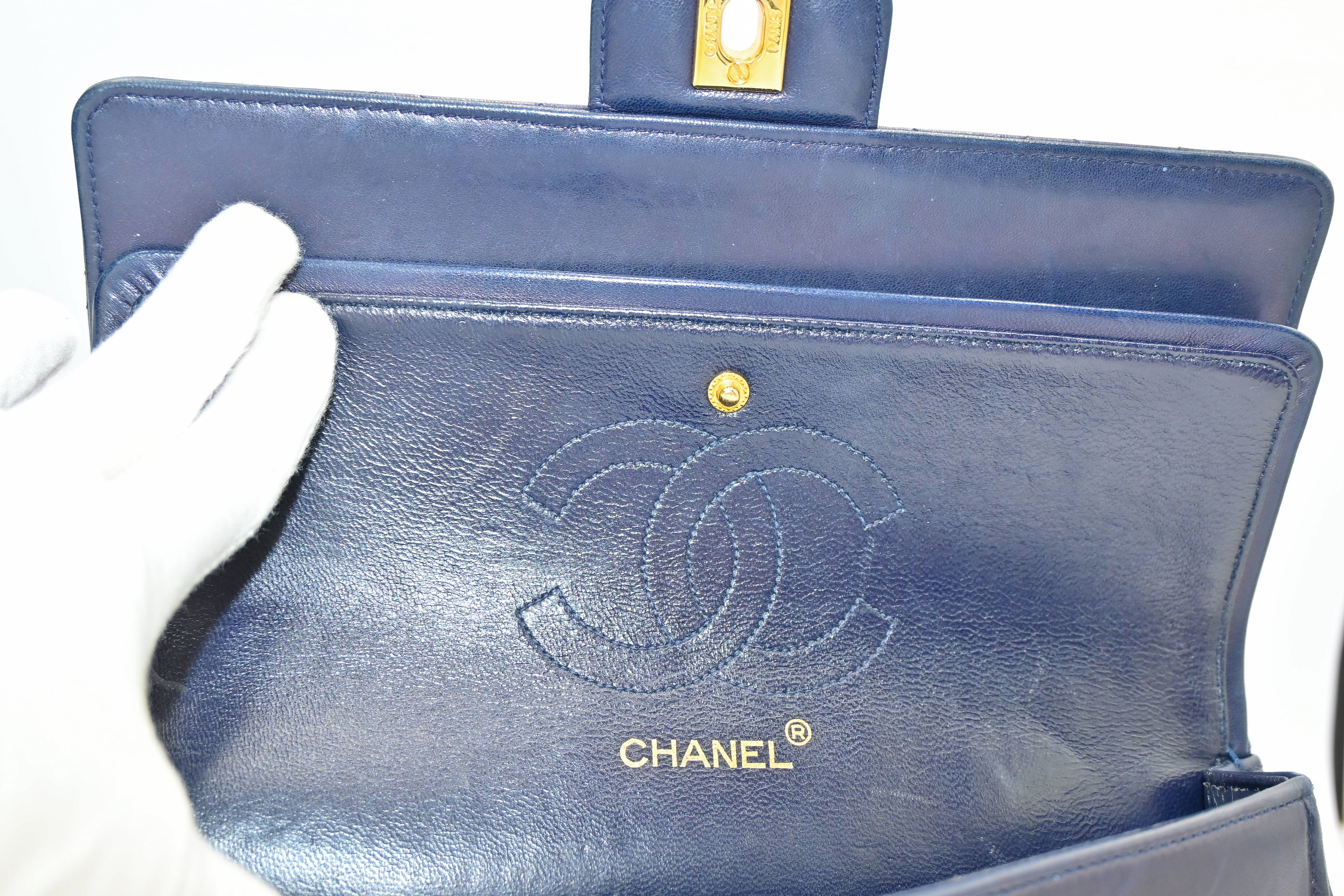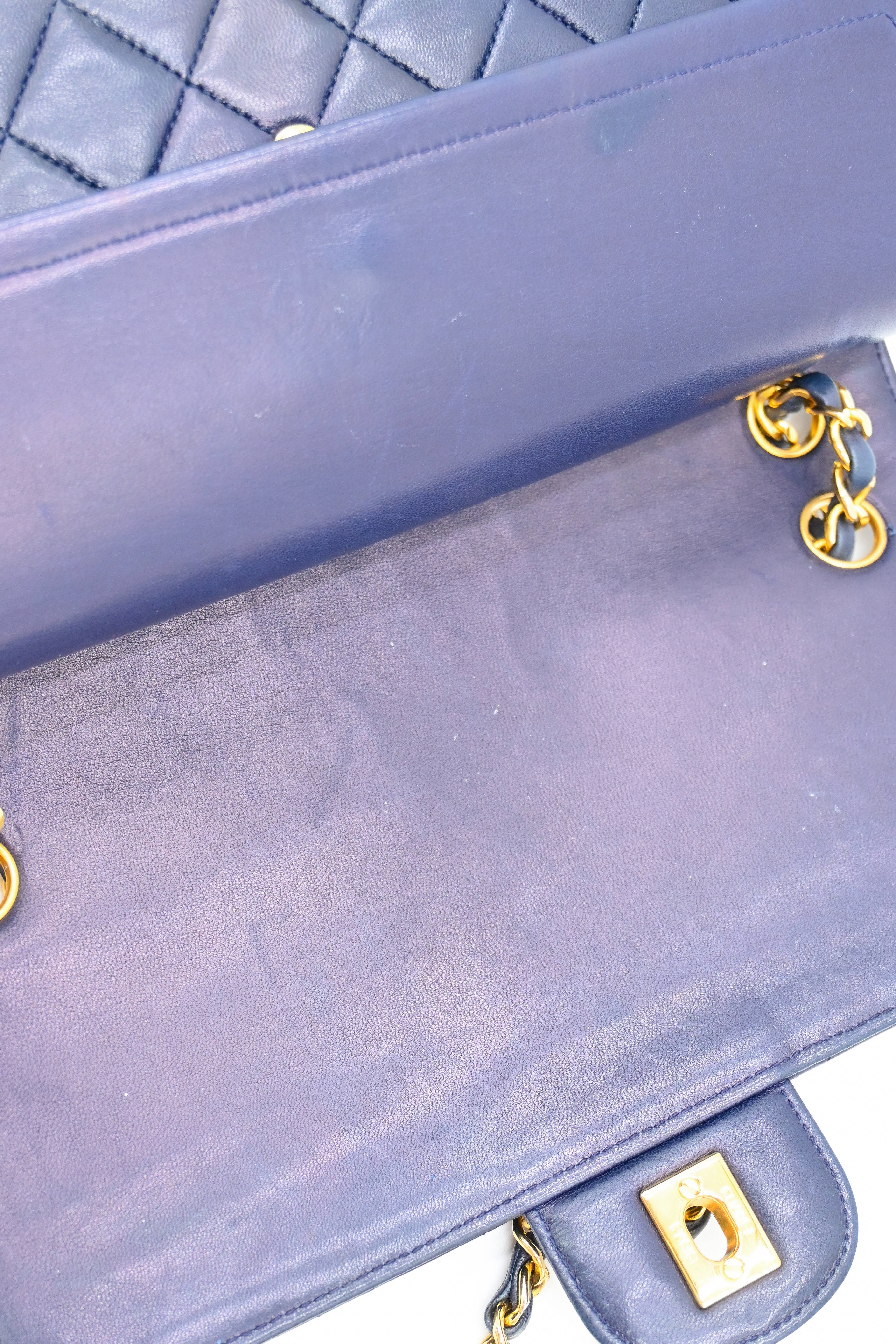 Vintage Chanel Navy Blue Classic Double Flap Bag Lambskin 2003/2004