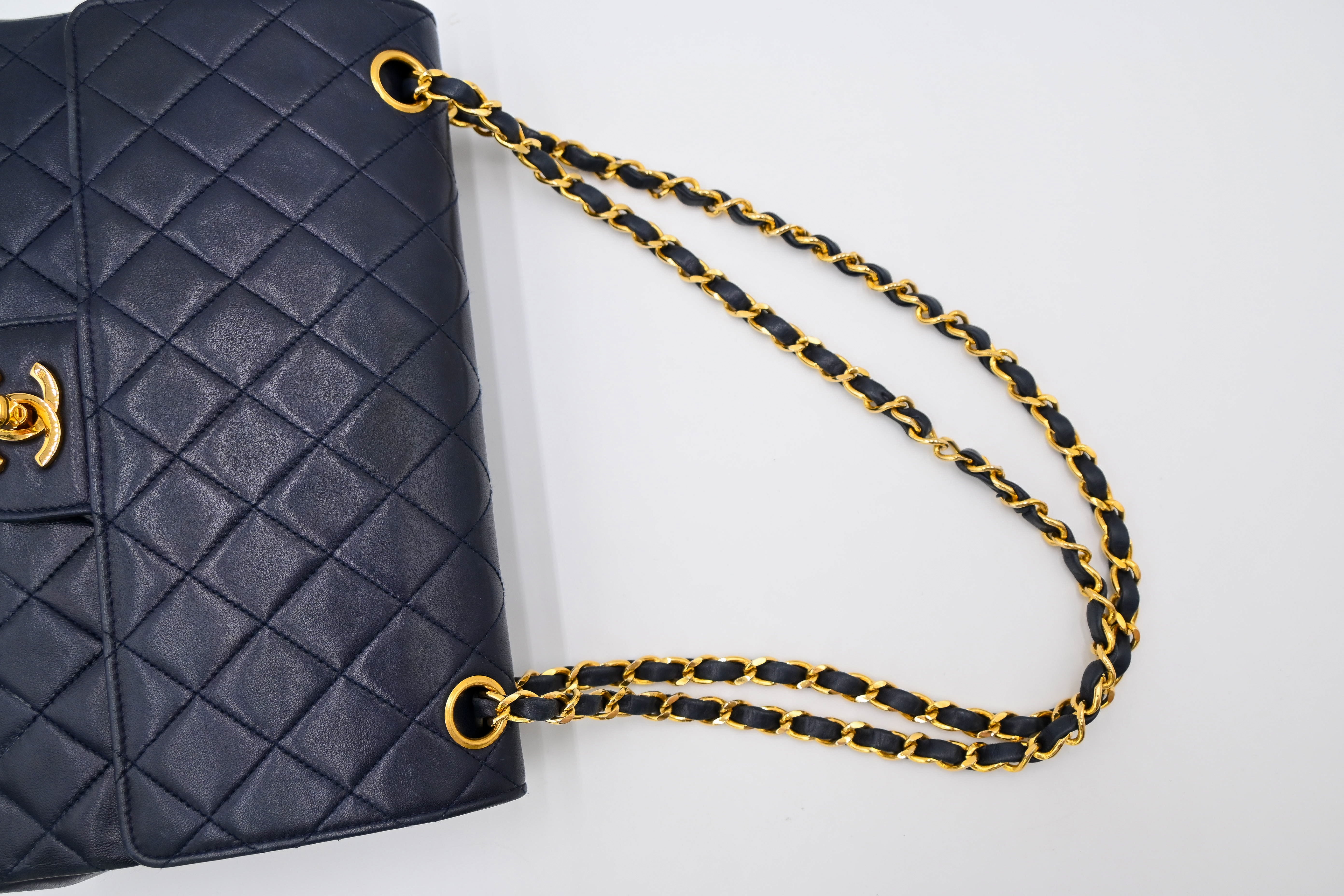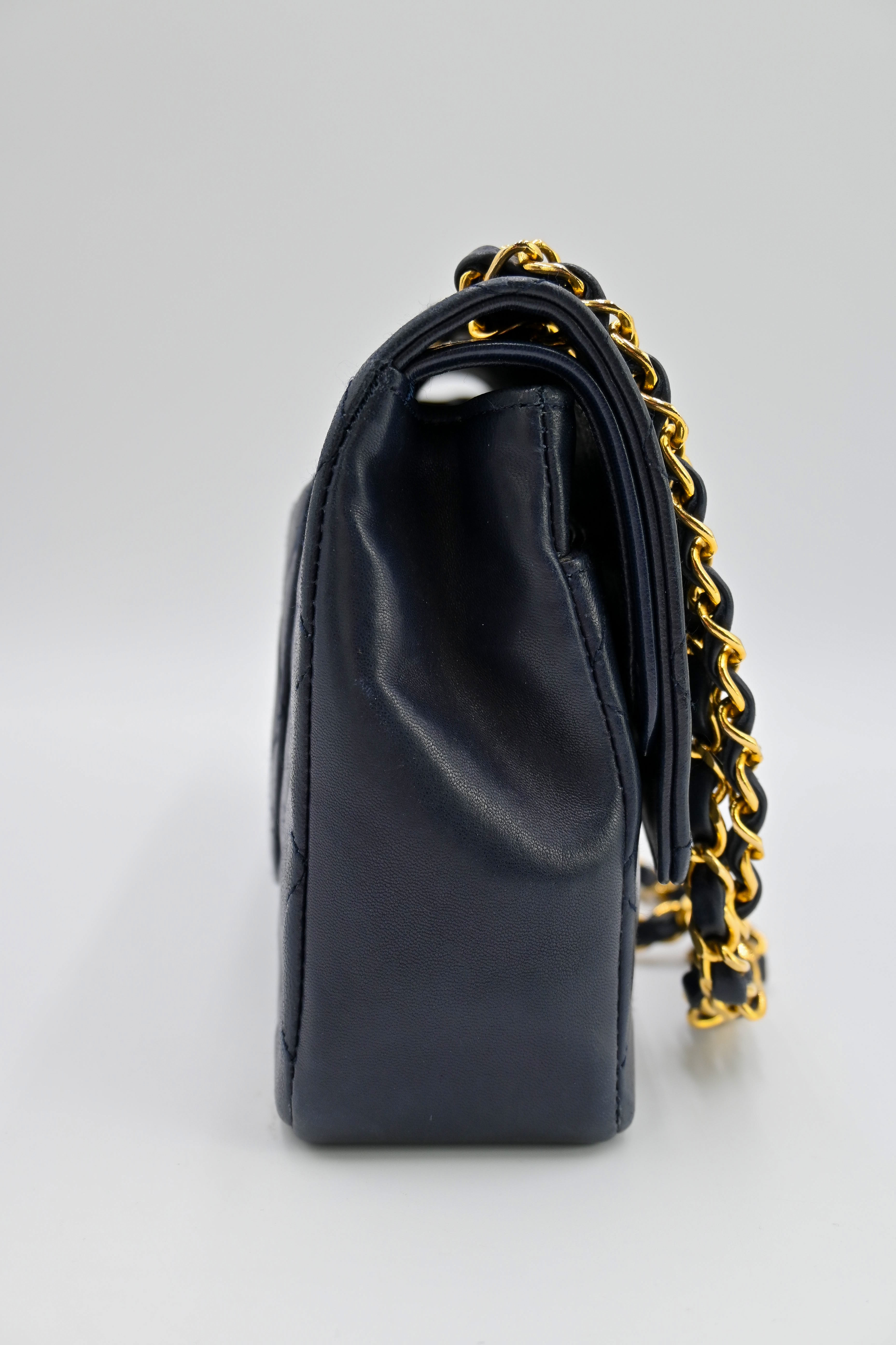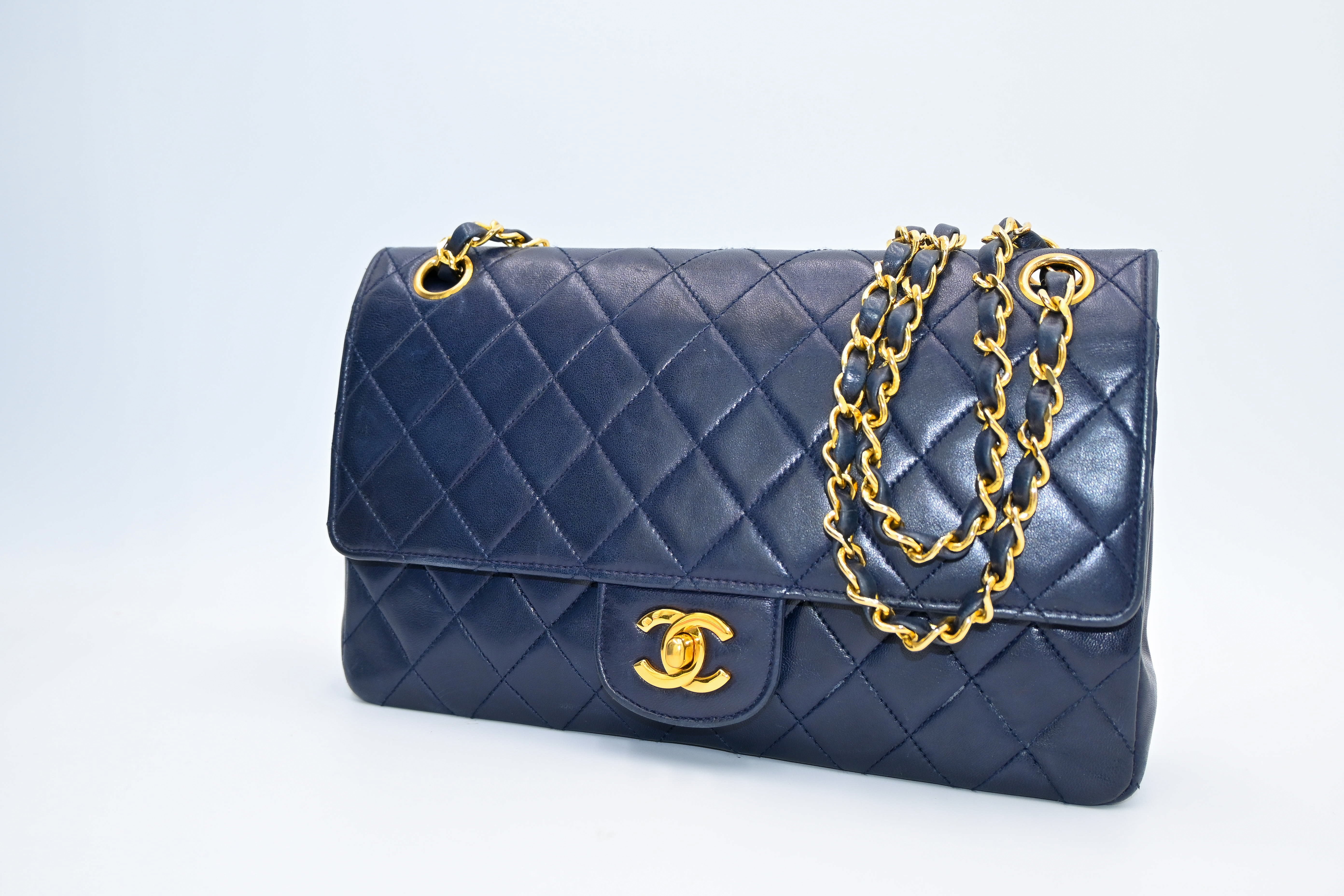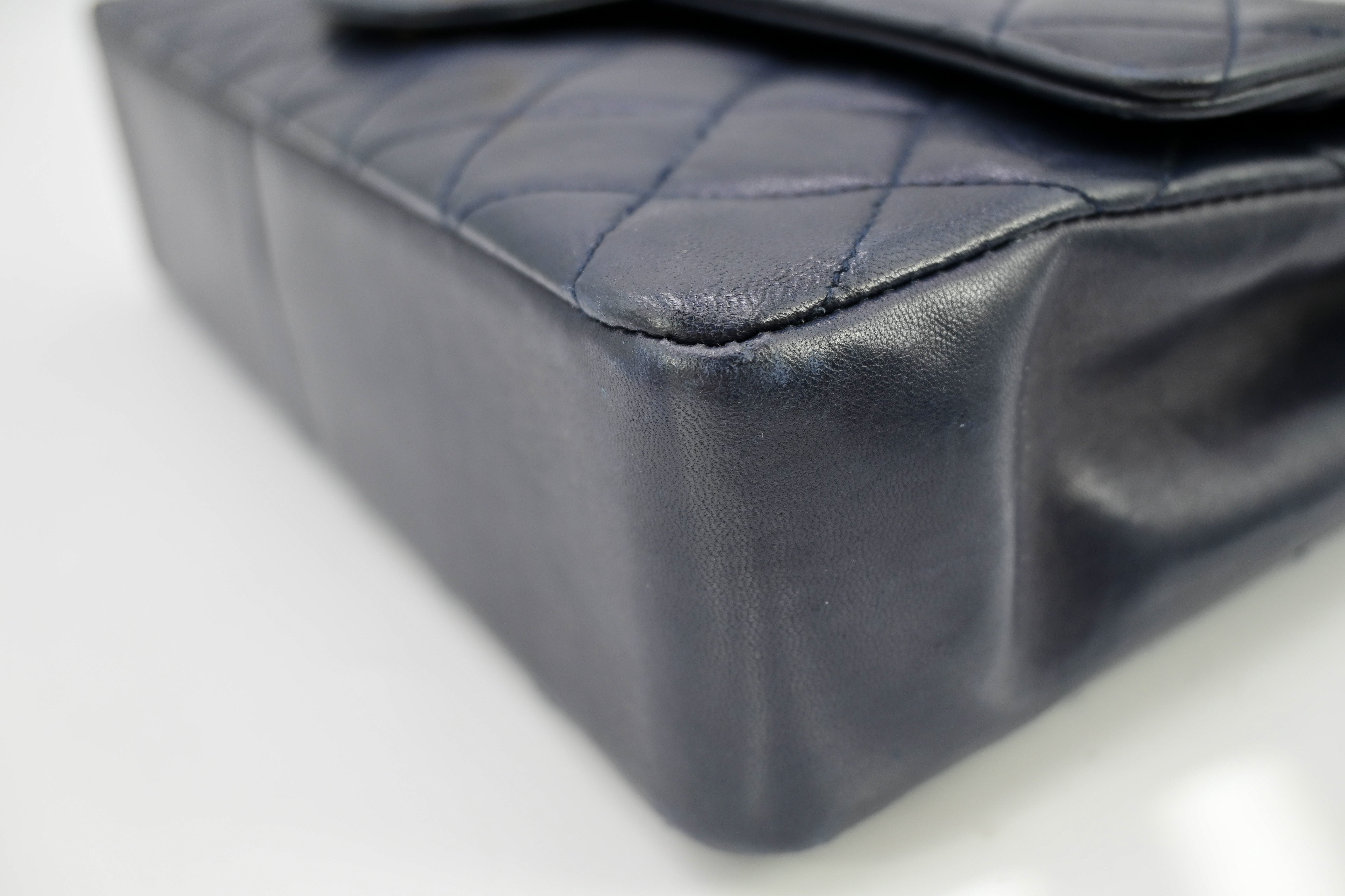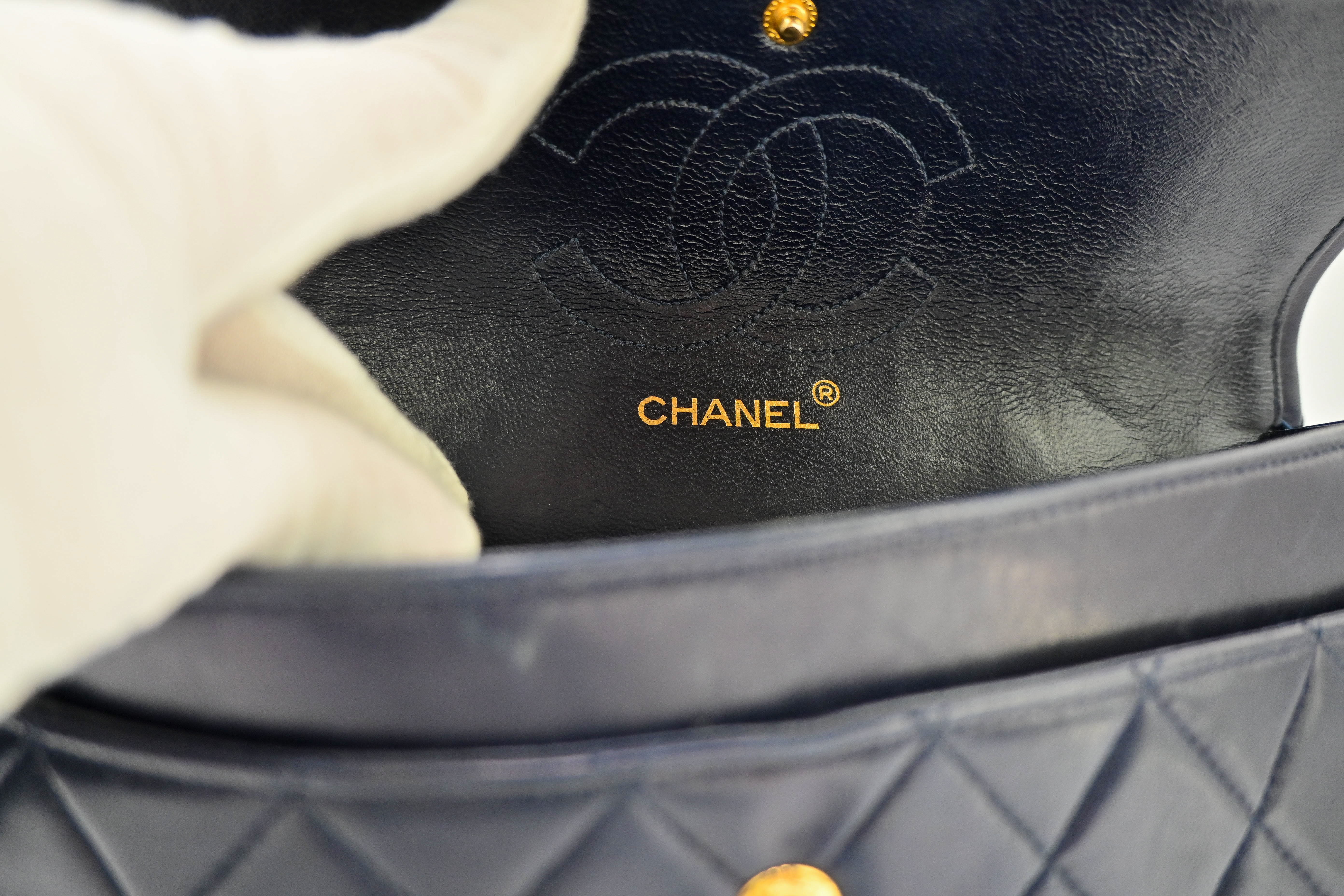 Vintage Chanel Navy Blue Classic Double Flap Bag Lambskin 2003/2004